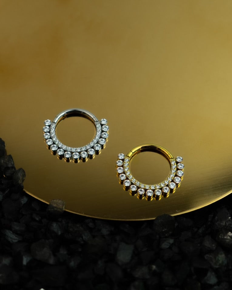 Ideāli piemērots dažādiem pīrsingiem, tostarp spirālei, šķautnei, čiekuriem, konkšķiem, plakaniem un citiem. Šim glītajam medicīniskās kvalitātes 6Al-4VEli ASTM:F-136 titāna labretes pīrsingam ir kristāla dārgakmeņi. Viegls, hipoalerģisks un izturīgs, tas ir ideāli piemērots ikdienas valkāšanai.